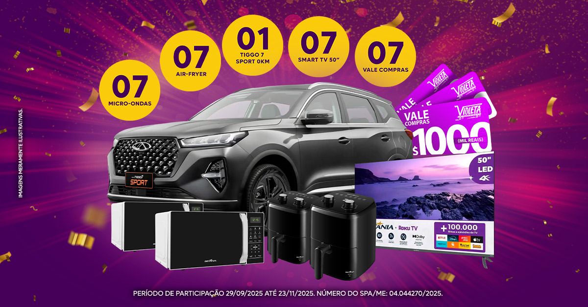 expressamente neste Regulamento.OS PRÊMIOS SERÃO ENTREGUES AOS CONTEMPLADOS LIVRES DE QUAISQUER ÔNUS.15 - DISPOSIÇÕES GERAIS: Será divulgado os nomes dos ganhadores para todos os participantes através de banners que serão exibidos nos acessos dos consumidores aos supermercados e também no web site da empresa. Canais e formas específicas de divulgação institucional da promoção comercial pela mídia. A promoção comercial será divulgada através de WhatsApp, Facebook e web site. O ganhador será avisado da condição de contemplado por meio de ligação telefônica e/ou e-mail, de acordo com os dados que constarem no seu cadastro. A empresa Mandatária tentará 03(três) vezes o contato com o contemplado considerando os dados informados na sua inscrição, por telefone e e-mail (não obrigatoriamente nesta ordem), com intervalos de 1 (um) dia entre uma e outra tentativa.De acordo com o artigo 6º do Decreto No 70.951, de 1972, o direito ao prêmio sorteado, ganho emconcurso ou conferido mediante vale-brinde, não reclamado no prazo de 180(cento e oitenta) dias, contados respectivamente, da data do sorteio, da apuração do resultado do concurso ou do término do prazo da promoção comercial, caducar e o valor correspondente ser recolhido, pela pessoa jurídica autorizada, ao Tesouro Nacional, como renda da união, no prazo de 10(dez) dias. As imagens dos vencedores poderão ser utilizadas em qualquer material que o Supermercado Violeta julgar pertinente, os mesmos se comprometerão a assinar um contrato permitindo ao Supermercado Violeta o uso das suas imagens em nível de divulgação do resultado do sorteio como comprovação de seriedade da mesma, por 01(um) ano a contar da data do sorteio. A participação nesta promoção implica na possibilidade de utilização da imagem, nome e voz dos contemplados pela empresa promotora, para fins de divulgação da promoção e de seus resultados, sem qualquer ônus adicional. A autorização será solicitada no ato da inscrição, mediante aceite eletrônico, facultando ao participante a possibilidade de não autorizar o uso de seus dados para fins de publicidade. Caso o contemplado não autorize o uso de sua imagem, isso não prejudicará o direito à premiação. Todo o material da promoção conterá a informação com o número do Certificado de Autorização. O valor da compra será excluído os valores dos produtos citados no artigo 10 do decreto 70.951 de 09/08/72 (medicamentos, armas, munições, explosivos, fogos de artifício, bebidas alcoólicas, fumo e seus derivados). As dúvidas e controvérsias oriundas de reclamações dos participantes serão primeiramente dirimidas pela Mandatária, persistindo-as, estas deverão ser submetidas a SPA – Secretaria de Prêmios e Apostas/MF - Ministério da Fazenda.O regulamento da campanha será exibido em banners no acesso dos clientes a todas as lojas participantes bem como no web site www.supermercadovioleta.com.br. Os órgãos locais de defesa do consumidor receberão as reclamações devidamente fundamentadas.Os dados pessoais coletados dos participantes (incluindo, mas não se limitando a: nome, CPF, endereço, telefone e e-mail) serão utilizados exclusivamente para a operacionalização da promoção, cumprimento de obrigações legais e prestação de contas junto à SEAE/MF. O tratamento de dados observará a Lei nº 13.709/18 (Lei Geral de Proteção de Dados – LGPD). Os dados serão armazenados pelo período necessário para a execução da promoção e cumprimento das obrigações legais, sendo posteriormente eliminados ou anonimizados. Os participantes poderão, a qualquer momento, solicitar informações sobre o tratamento de seus dados, bem como requerer sua exclusão, nos termos da LGPD 16 - TERMO DE RESPONSABILIDADE Poderá participar da promoção qualquer consumidor que preencha os requisitos estipulados no regulamento da campanha autorizada; Os prêmios não poderão ser convertidos em dinheiro; É vedada a apuração por meio eletrônico; Os prêmios serão entregues em até 30 dias da data da apuração/sorteio, sem qualquer ônus aos contemplados Quando o prêmio sorteado, ganho em concurso ou conferido mediante vale-brinde, não for reclamado no prazo de cento e oitenta (180) dias, contados, respectivamente, da data do sorteio, da apuração do resultado do concurso ou do término do prazo da promoção, caducará o direito do respectivo titular e o valor correspondente será recolhido, pela empresa autorizada, ao Tesouro Nacional, como renda da União, no prazo
